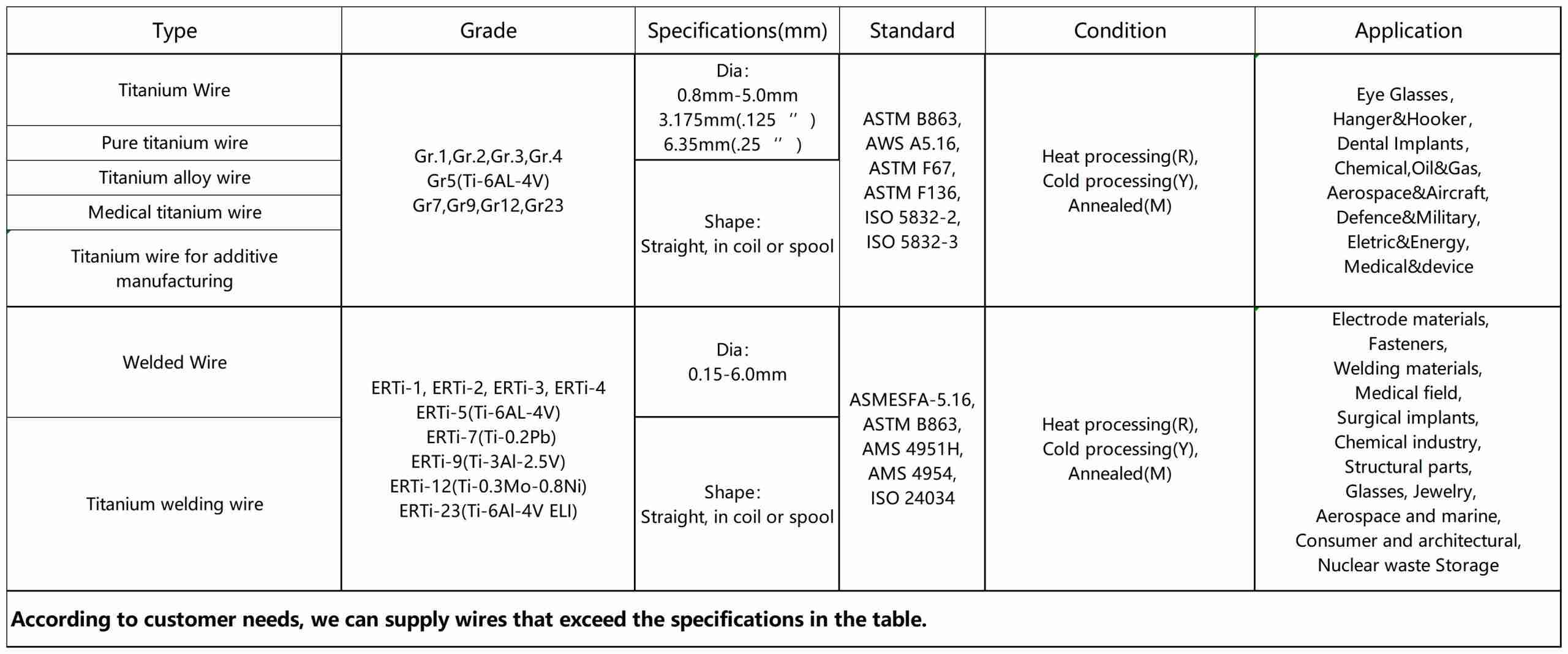 These different types of titanium wire have specific uses and performance advantages in their respective fields. The specific type of titanium wire chosen depends on the application requirements and desired properties.